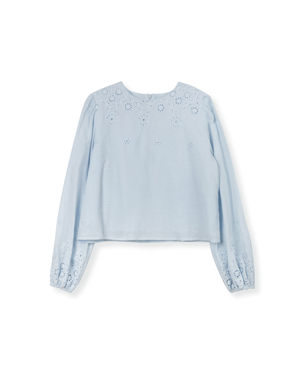 Mallory and Merlot Girls Soft Textured Eyelet Blouse 2Pc Light Blue