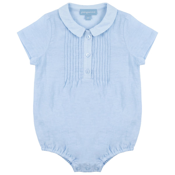 Pompomme Baby Boy Pintuck Romper Blue