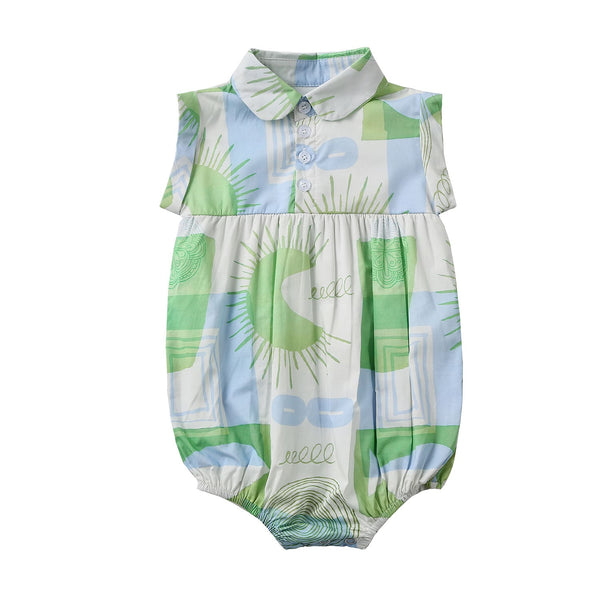 Dinky Baby Girls Ford Sleeveless Romper Green/White