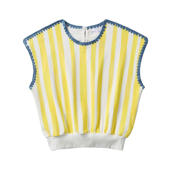 Dinky Teens Girls Novar Sleeveless Striped Top With Embroidered Trim Yellow/White/Blue