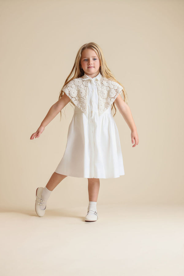 One Child Girls Lester Crochet Cape Dress White